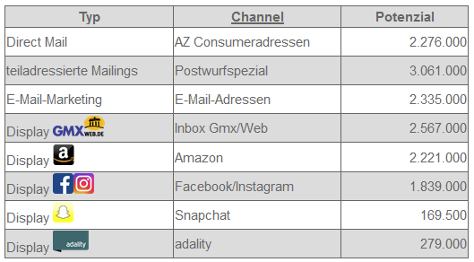 Ermittlung von Potenzialen für diese Zielgruppen für die Mediakanäle